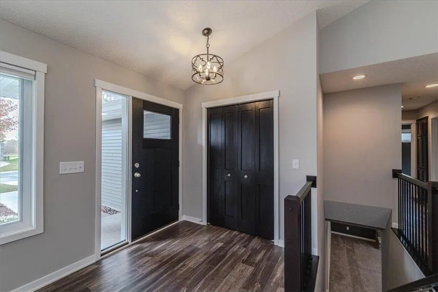 Beautiful 4 Bed/ 3 Bath home custom-built by JB Woodfitter Homes! Situated on a quiet cul-de-sac road w/ a private tree lined backyard. This meticulously maintained property showcases thoughtful design and quality finishes throughout! Features include: LVP flooring, a blend of white enamel and espresso stained woodwork. Large windows offer an abundant of natural light. The kitchen highlights stainless steel appliances, quartz countertop perimeter w/ a granite accent island, subway tile backsplash & rich espresso stained cabinetry. The primary suit includes a 3/4 bath and walk-in closet. The walkout lower level features a gas fireplace with stacked stone surround and a shiplap accent wall. Enjoy the private backyard w/ mature tree line. Perfect for relaxing or entertaining.