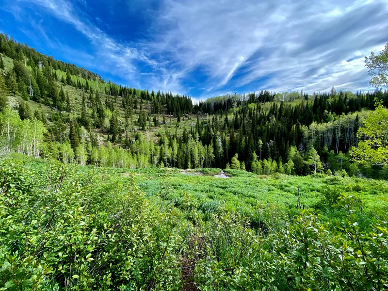 The Buckskin Fork Ranch is a premium alpine ranch located at the top of Monte Cristo in Cache County, Utah, encompassing two high drainages from 7,600 to over 8,800 feet. Perfect blend of aspen, pines, and mountain-top parks, offering ideal big game habitat and incredible aesthetics. Two water rights with 1858 priorities are included. Located in the Cache general season unit for buck mule deer, and Cache, South limited entry unit for elk.