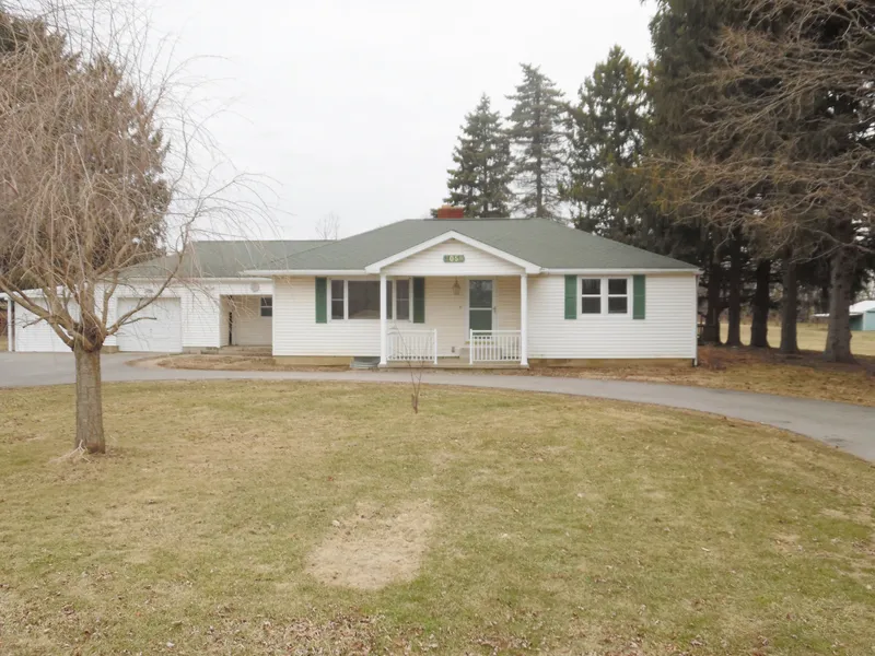 Nice 3 bedroom, 1.5 bath ranch home with country setting on 1 acre. Original hardwood floors refinished by Amish craftsman, Cathedral Ceiling in family room, new windows, new bathroom, new kitchen counter, new fans and lights, fresh paint, new floors in kitchen. Addition enclosed shop attached to garage. Fireplace is in basement. Listing agent is owner and Licensed real estate agent. There is an additional 5 acres with pond and pole building available.