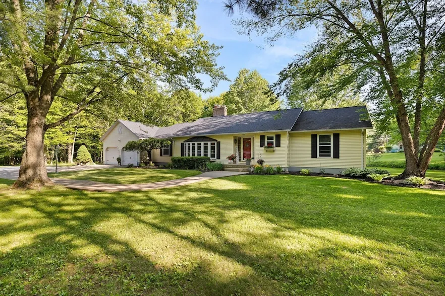 Nestled on 5.29 acres in a park-line setting with wooded trails and plenty of wide-open space, this home truly has it all! You'll love spending summers in the stunning in-ground pool, complete with a pool house and expansive deck that is ideal for pool parties and gatherings. A large garden area, treehouse in the woods, and serene surroundings make this property feel like your own private retreat. Inside, you'll find three spacious bedrooms and three full bathrooms, offering plenty of room for everyone. The primary suite features two closets, with one being a massive walk-in closet. Enjoy two large living areas, both with fireplaces, one wood-burning and one propane. The updated, fully applianced kitchen has gorgeous granite counters plus a large island with plenty of seating. The lower level is complete with a rec room, possible fourth bedroom, workshop area, and the third full bathroom. Need space for hobbies or projects? You will love the 24' x 32' heated Amish-built outbuilding, complete with radiant propane heat, a wood stove, air hose plumbing, and a compressor that stays. Additional features include a new roof in 2021, a new pool liner in 2019, and a setting that is truly made for entertaining. Whether you're hosting friends or enjoying peaceful solitude, this is a place to call home.