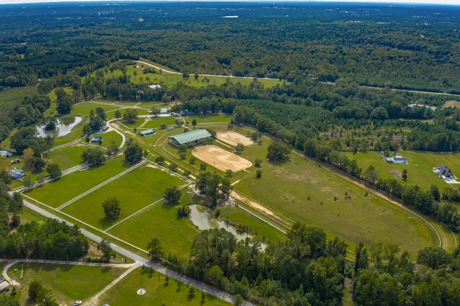 This picturesque equestrian farm is in turn key condition and ready as a working facility or for a family wanting ultimate privacy with a convenient location and a great school district! Complete w/multiple barns, storage, covered arena, riding rings, jump field and a 1/2 mile track for exercising or hacking out. The 53 acre tract is tucked away on a very quiet street, yet close enough to grocery stores, shopping& interstates. A large recreational building with 2025 SF consisting of kitchen, full bath, laundry facility, office and covered porches makes a great place for gathering or living. A 1500 SF Manager's cottage with 2 BR/1 BA, Kit w/FP and LR w/FP rounds out the many buildings that facilitate the needs of a working farm. Once you enter the tree-lined drive, the beautiful white board fenced pasture &spring fed ponds will draw you in to make you want to stay! An additional 32.78 acre tract is available separately and is contiguous to this property.