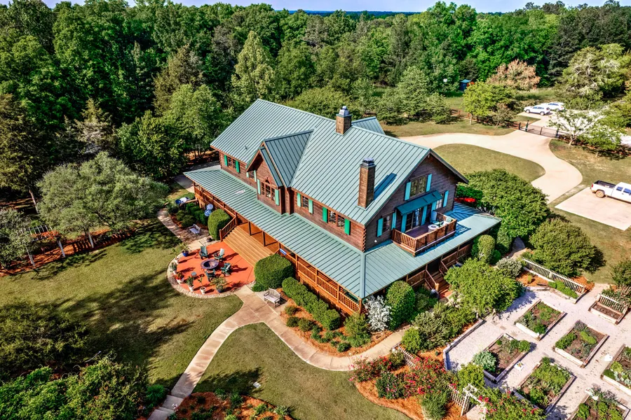 Experience the comfortable lifestyle in this impeccable Blythewood home displaying an earthy and peaceful vibe. Set in the suburb of Columbia, this Rustic-style hunter's paradise showcases an expansive covered porch where you can admire the neighborhood vistas. Soaring ceilings, multiple French doors, and stunning millwork are on show, highlighting the living area and creating a welcoming atmosphere for visitors. Enjoy the outdoor views from your dining room while the avid home chef whips up delicious meals in the kitchen equipped with vintage-style cabinetry, stainless steel appliances, and an island. The primary bedroom is tailor-made with a balcony and an ensuite fitted with a drop-in tub, enclosed shower, plus a dual sink vanity. Relish refreshing dips in your pool while entertaining guests in your fenced-in backyard surrounded by tall mature trees for undisturbed nature panoramas. Other must-have features include a processing facility, laundry room, recreation space, and a cottage. Make this exciting opportunity your own and let your imagination run wild with the possibilities awaiting you! This property in its entirety also includes 2 other homes which are situated on a beautiful pond. Perfect for a family compound or for someone who helps maintain the property. There is an additional 77 acres with two small guest houses and a pond that can be added. Co Listed with Amy Hammond (864-314-4000) of Joan Herlong and Associates Sotheby's International Realty.