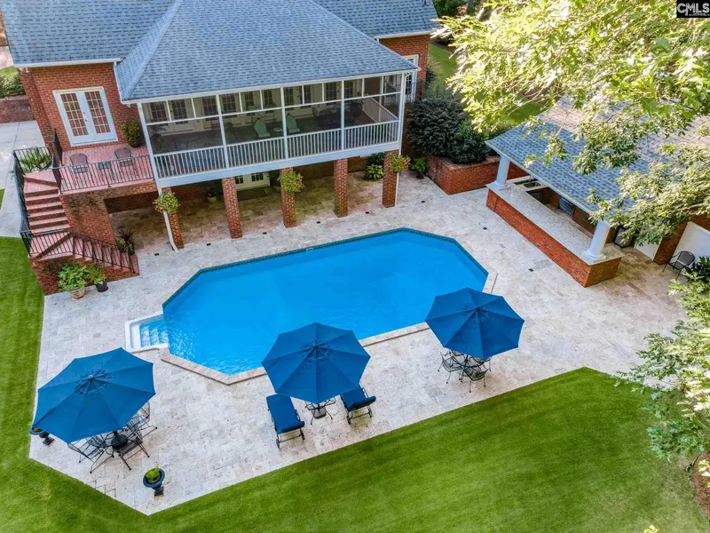 From the moment you enter the front gate, you are welcomed by a private, 25-acre homestead with beautiful rolling hills, amazing lawns and hardwood trees. The circular driveway leads you to the front door of this all-brick home with luxurious features, an amazing floor plan, 9 ft. ceilings and storage galore. The immaculate, 4-bedroom home boasts casual elegance while offering a comfortable lifestyle. The walk-out basement features an additional full kitchen, den and bedroom suite which opens up opportunities for guests or multi-generational families. The main level features a dining room, living room, den, two fireplaces, master suite and an over-sized screened-in porch overlooking the pool and outdoor living area. The second floor has an open flex space (study/den) flanked by 2 bedrooms, each with its own private bathroom. The breathtaking grounds are complete with irrigation system and well-designed drainage. The pool area is the highlight of the back yard as it affords great space for entertaining. The travertine tile creates a cool surface for bare feet, even on the hottest of days. The 20 X 20 pool house has a commercial grade kitchen complete with ice machine, 36" grill, 36" range with griddle, refrigerator, 8 foot hood, and granite countertops; a storage/utility room and a bath. The brick masonry fireplace extends your outdoor season and offers a great gathering spot on cool nights. Schedule your private showing today.