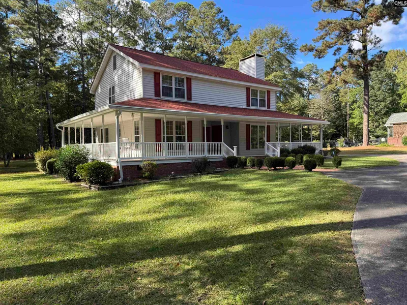 One-owner home on 2.25 acres of flat, usable land in Longcreek with no HOA and award-winning Richland Two schools. Tucked on a quiet side street with minimal traffic, this 4BR/2.5BA home offers space, privacy, and convenience. A short walk or golf cart ride takes you to Columbia Country Club, just a pitching wedge away. The cedar-sided home has been upfitted with vinyl siding for low-maintenance living. A large wrap-around porch is ideal for coffee, cocktails, or simply enjoying the outdoors. Inside, the main level features a formal living and dining room, an eat-in kitchen, a den with a wood-burning fireplace, laundry, and a half bath. Upstairs are four bedrooms and two full baths. Outside, there is a detached 2-car garage and plenty of space for additional structures or room additions. With 2.25 acres, this home offers potential to create a garden, workshop, or expand outdoor living. A...