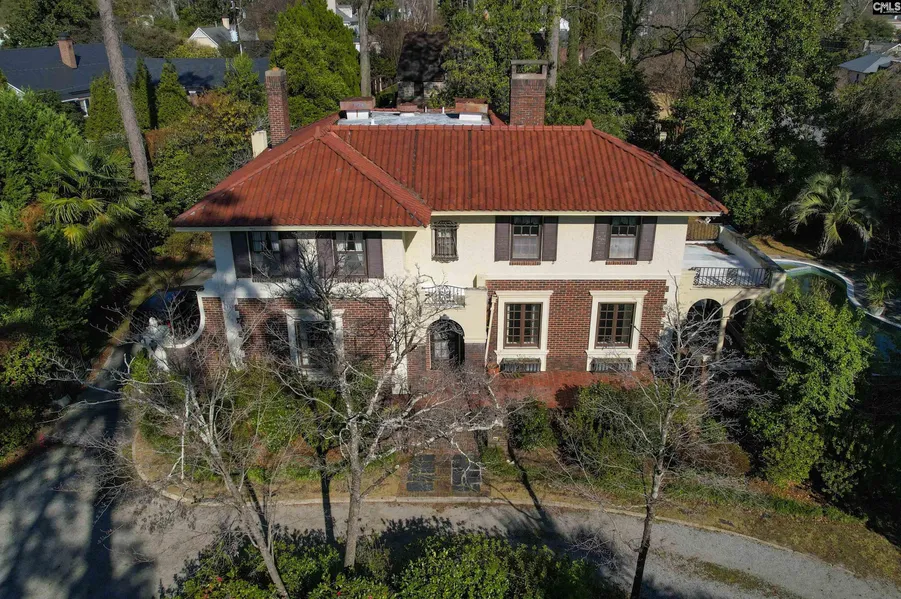 This Spanish Revival home is a rare gem of a property and has been owned by the same family since it was built nearly one hundred years ago. Located in Heathwood on a lot that's two-thirds of an acre at the corner of Devine Street and Sweetbriar Road, the home features tall ceilings and hardwood floors on both levels and lots of arched windows and several arched openings between rooms. The first floor has big formal living and dining rooms, a cozy study, a huge family room, and a small kitchen between a butler's pantry and sun room/ back door entry area. All three bedrooms and a corner sunroom are on the second floor. The master bedroom has a private bath, and a full hall bath is shared by the other two bedrooms. Outside, there are covered and uncovered porches that overlook the backyard and swimming pool. A former two-car detached carport has been converted to outdoor living space with a fireplace, cathedral ceiling, and a half bath. The property is surrounded by beautiful homes, and many of them have had significant renovations and additions over the years. This property provides another opportunity to restore a fabulous home and grounds in one of the area's finest neighborhoods to its previous splendor. Disclaimer: CMLS has not reviewed and, therefore, does not endorse vendors who may appear in listings.