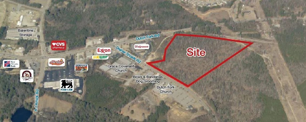 13.46 acres located in the Dutch Fork area and fronting Dutch Fork Road in Richland County