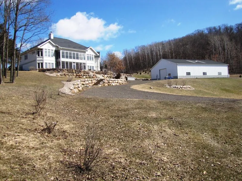 This property is located on 62+/- acres just minutes from Spring Green, Richland Center and the Wisconsin River and offers amenities not often seen in Southwest Wisconsin homes. The 700 square foot master suite is just the beginning. A custom kitchen, dining room, 4 season room and living room have fine views of the valley. A library, Finnish sauna, family room w/ wet bar and 6 car garage are added benefits. The large heated outbuilding with office and bath is the ultimate man cave. Frontage on Bear Creek.