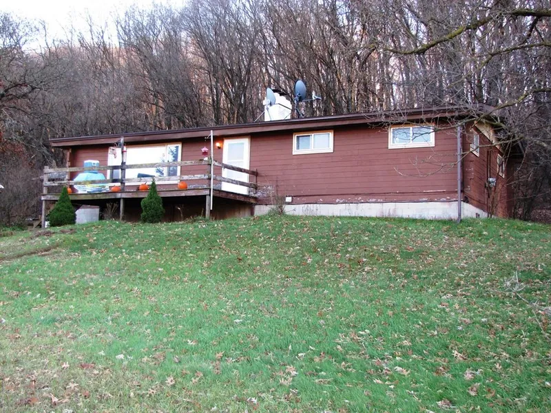 This home w/ hunting just outside the back door appears to be tongue and groove log construction with exposed beams and cathedral ceilings. Extras include a built in kitchen grill, wood burning fireplace, and outdoor wood furnace. It needs a little TLC but the end result should be worth your while. The 39+/- acres is mostly wooded with some timber value. The sellers have harvested many deer over the years and rock outcroppings with beautiful long range views await those that hike the established trail system.
