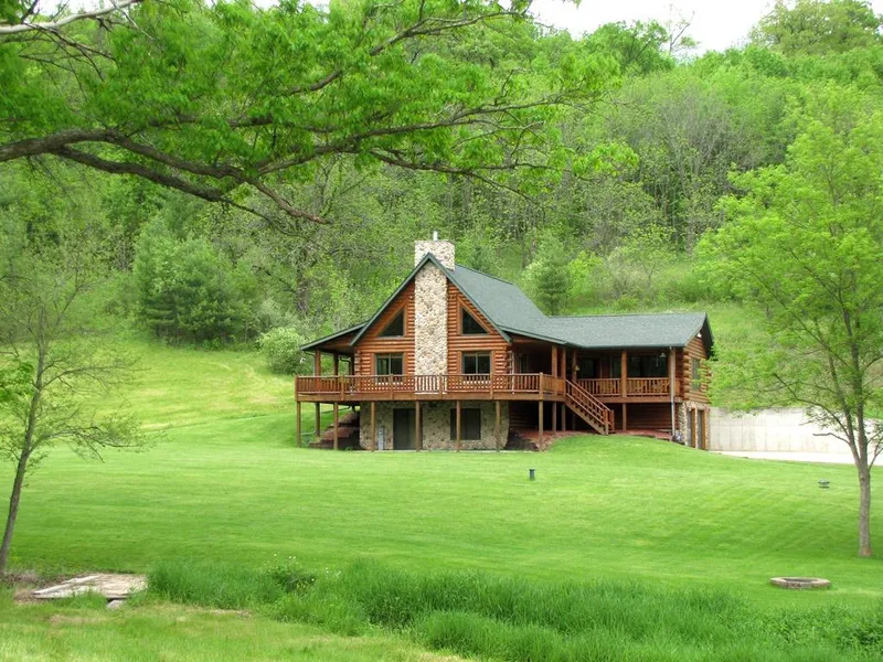 Convenience & privacy; the best of both worlds. 5 minutes from Richland Center yet feels secluded. 11 yr old log style home surveys the private valley. A fireplace graces the dining & living rooms with a 2 story rock faced chimney. Upstairs master suite complete with sitting area & walk in closet. 2-car tuck under garage plus a pole building for lots of under-cover parking/storage. 57+/- total acres with 45+/- acres wooded across 2 valleys each with a creek. 8+/- open acres for a garden/paddock/food plot.