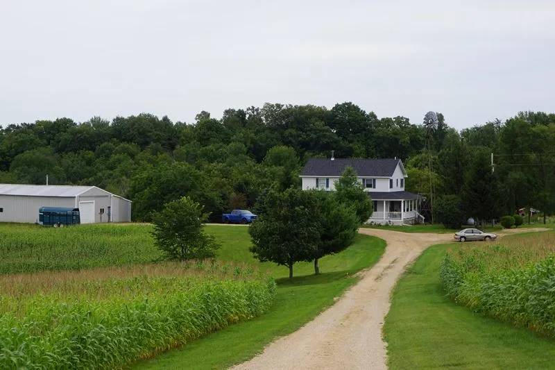 Peaceful country escape. 4 bedroom 2 1/2 bath spacious open home with finished walkout basement with guest kitchenette , wood burning stove, huge pantry, enclosed 8x26 glass sunroom, 10x20 sun deck and covered wrap around deck on 40 acres of pasture, woods and tillable. 29x48 pole shed with electric and concrete floor and 17x64 open lean to. Fenced areas for the animals along with cattle water and a couple other smaller outbuildings and original wind mill. Private Drive To Quiet Country Living