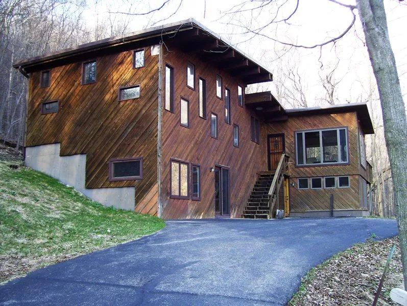 Unique blend of wooded ridges, valleys teaming with deer, turkey ,soaring Eagles, towering rock outcroppings, springs and nature trails. Rustic two story home features 2,168 square feet of living, two bedroom, 2 baths gourmet kitchen , open living room and sun room, lower level rec room and more. Three car garage with loft living quarters . Contact us for complete details.