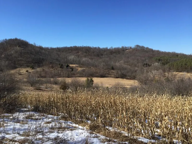 This 55+/- acres has varied terrain from ridge top rock outcroppings to hidden valleys. 39+/- acres are wooded with a mix of larger trees, shorter cover and apple trees making it a natural home for deer and turkeys. 11+/- acres of open ground for food plots is scattered throughout the parcel. A spring feeds a creek running along one side of the parcel. Potential building sites include valley sites close to the road or private locations with long range views of the beautiful Pine River Valley.