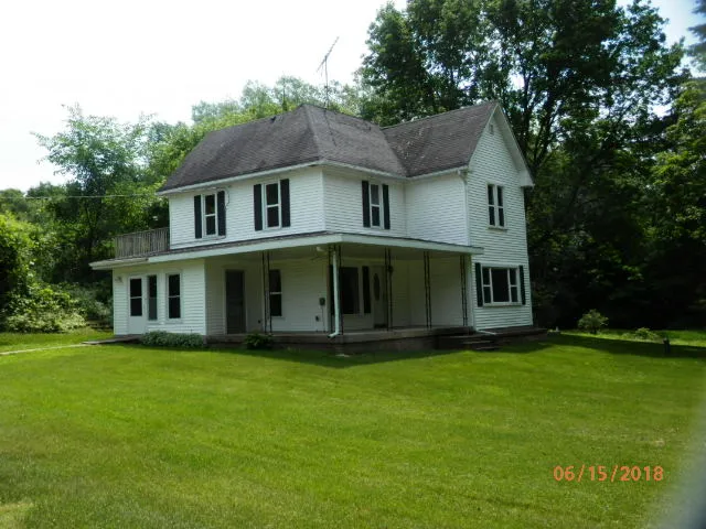 R-7483 QUIET COUNTRY ROAD: 35 acre farmette with pond and mostly wooded land. The home is older 2 story farm house with open porch, vinyl siding, newer windows, new septic system, new furnace, newer well, set up as a duplex with kitchens on both levels. 3 bedrooms, 2 full baths ready to move in. There is also a 30x40 pole shed to store all the toys. Will require dam transfer permit.