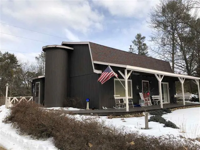 R-7621 Well kept 4 bedroom, 2 full bath home near Lone Rock. Features vaulted ceiling in the living room and spiral staircase to upper level. One main level bedroom with full bath and jet tub. Second level has 3 additional bedrooms and second full bath. Large kitchen/dining area combination. Front porch stretches the full length of the front of the house. There's a 3-car detached garage with a lean to on the back side as well as another small building for storage, etc. The property has 5.9 mostly wooded acres total.