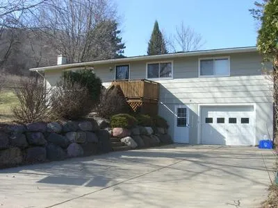 Nature At Your Doorstep! 3 bedroom, 1 3/4 bath attractive ranch style home with walk-out basement located on a quiet lot near wildlife. Watch the deer and turkey while you relax on the extra large private deck. Home features large family room with stand alone wood stove, cedar lined closet, cathedral ceilings, one car tuck under garage. Also features wood burning furnace for supplement heat.