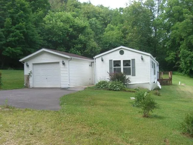 Well Care For! 2 bedroom, 1 bath manufactured home just 2 miles from town on 3.63 acres featuring central air, blacktop driveway, attached garage with breezeway, partial basement, appliances included.