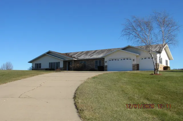 R-7672 PANORAMIC VIEWS: One level 3 bedroom, 3 bath ranch home featuring large great room with gas fireplace, patio doors on to deck, breakfast bar, open stair case. Kitchen features light oak cabinetry, all appliances included. Spacious master bedroom, master bath with tray ceiling, walk-in closet, 12x13 master bath with tub and shower stall. Two other bedrooms on the main level, full bath and laundry with storage closets. Lower level is fully finished with large family room, walk-out to back yard, full bath and potential 4th bedroom but is not walled off. Home sits on 5 acre plus manicured yard with concrete driveway from Hwy to the house and pole shed. 3 car attached garage and 2 car detach garage. Great views from every direction.