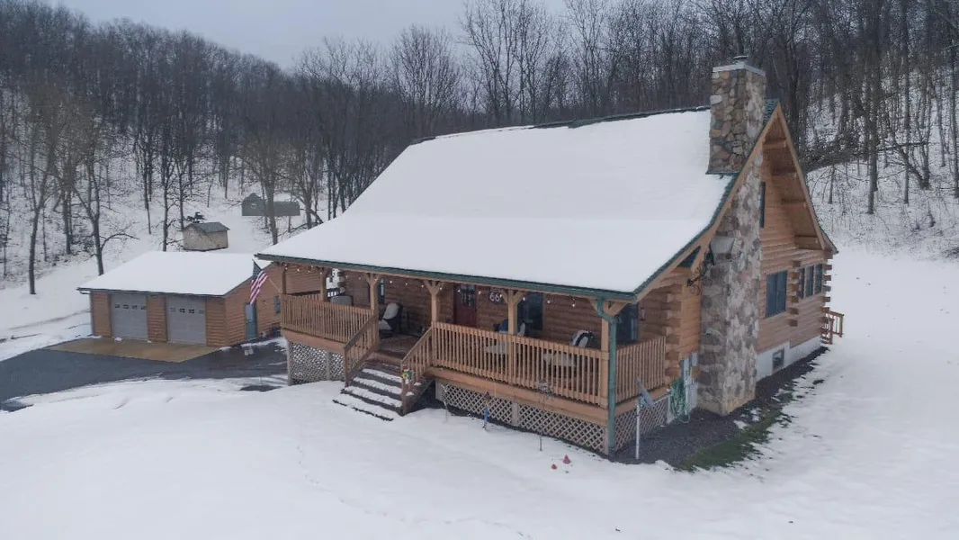 The interior boasts of knotty pine offering a charming rustic feel and atmosphere. Upon entering, youll notice a beautiful vaulted ceiling and open floor plan providing ample space to hang your very own trophy whitetail mounts. A handsome fireplace with stone backing graces the living room. The basement was recently fully-finished and has a lofty 8ft ceiling proving an additional full bathroom and overflow sleeping area. The home features a forced-air furnace and has an Aprilaire system. Theres even fiber optic en route. The estate has been outfitted with a newer furnace, well water pump, washer/dryer and microwave along with an exterior sealant coat on the outside of the home.