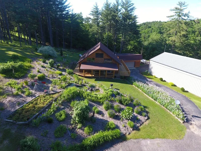 The current owners have put their personal finish on this unique home. From the lovingly tended flower and vegetable gardens to handcrafted kitchen cabinets, you will appreciate the artistic touch. Many of the rooms have a special feel, from a log cabin style master bedroom to a main floor bath with over 100 individual wood triangles on the ceiling. The main floor has cathedral ceiling in the eat in kitchen and living room to give it an open and air feeling. The master bedroom and bath with shower and jetted tub completes the main floor. Half log stairs lead to loft