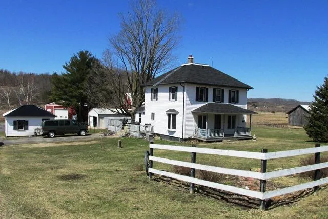 This compact hobby farm features ; 4 acres, fenced pastures, traditional 4 bedroom farmhouse,27x40 barn w/ built-in chicken co-op, box stalls ,hay loft w/conveyer,36x26 heated shop,24x32 garage,14x18 garden shed and 9x23 metal storage shed. Quiet valley setting with over 200 frontage on the Pine River Located 10 miles to Richland Center and Hillsboro and 1/2 mile north of Yuba Wisconsin. Back To A Simpler Way Of Life.