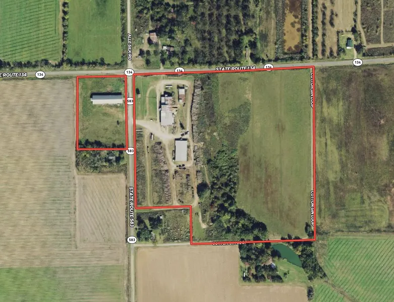 This expansive corner lot is located at the intersection of Highway 583 and Highway 134, offering excellent visibility and high traffic exposure. The property includes three well-maintained shop buildings, each designed for various industrial or commercial purposes, with an open shop yard providing ample space for equipment, storage, or further development.