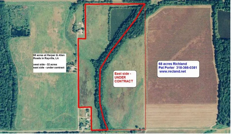 Directions: From Rayville, take Hwy. 3048 south to cross over I-20. Turn east (left) on Harper Road. Turn north (left) on Allen road. The property lays on the east side of Allen road and north side of Harper road at this point. See aerial map.