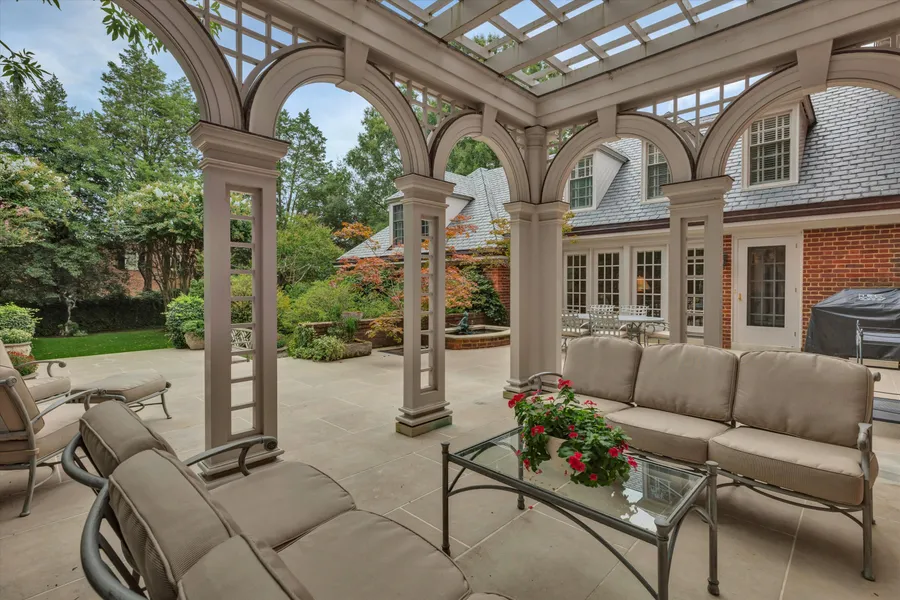 One of Richmond's most prized properties designed by Clarence Huff & positioned on the MOST desirable block of Windsor Farms. An architectural masterpiece on a double lot & framed by lush fountains, sculptures & Charles Gillette designed gardens & paths. The interior offers tall ceilings, heavy millwork, well-scaled Foyer with turned staircase, magnificent Living & Dining Rooms for the frequent entertainer. A walnut paneled Library offers one of 4 fireplaces & rich built-ins. An ELEVATOR serves every floor from Basement to Attic! A center island Kitchen boasts stone countertops, high end appliances & is complimented by a spacious butler's pantry. A light-filled Solarium leads to a bluestone terrace with pergola, & enchanting fountain. From the patio walk to the hidden pool & pool house screened by lush planting. The 2nd floor also features tall ceilings, 5 bedrooms, all with updated bath...