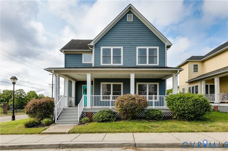 Great NEW price! Attractive 2007 transitional echoes the Victorian charm of Barton Heights' historic homes with its distinctive wraparound front porch for enjoying the cool fall nights. The light-filled interior spaces (2616 sq ft) feature 9-foot ceilings, an open floor plan, sun-drenched staircase to the second floor and an abundance of double-hung windows with plantation blinds making this home cheerful and bright year round. First floor primary bedroom has a walk-in closet, a secondary closet, and full bath with dual vanities, soaking tub and stall shower. Upstairs are 3 additional bedrooms and 2 full baths, including a suite that could serve as a second floor primary. Additional features include wall-to-wall carpet throughout, lots of large closets for an abundance of storage, 2-car off street parking and storage shed in the rear, and two newer heat pumps replaced in 2016 and 2017. Convenient to the VCU campuses and all things Downtown Richmond!