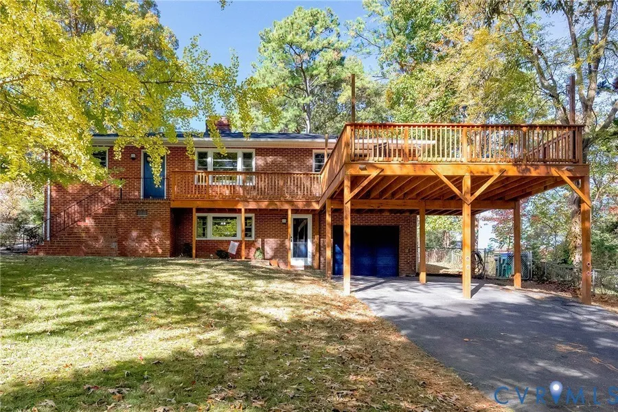 Situated near the James River on a spacious N Riverside Drive lot, minutes from Carytown, The Veil, favorite dining spots, shops, Forest Hill Park with its beloved farmer's market, hiking trails, downtown, and interstate access. This inviting brick mid-century home offers comfort, accessibility, and even potential passive income. The property instantly impresses with its expansive 20'x21' deck, providing a picturesque setting for morning coffee, evening relaxation, or social gatherings. Not only does this deck serve as a scenic vantage point, but it also shelters two cars on the paved driveway below. When you enter the main level, the living room welcomes you with gleaming, newly refinished hardwood floors and a classic brick fireplace equipped with gas logs. The elegance of the hardwood flooring extends into the formal dining room and continues throughout the three bedrooms located on this level. The primary bedroom boasts 2 closets and a shiplap wall. The tile bath floor is just 3 years old. The kitchen has been thoughtfully updated with recent enhancements to the cabinets, flooring, and backsplash, all beautifully complemented by stunning new quartz countertops. With its private exterior door, the lower level is a potential source of PASSIVE INCOME (Airbnb?). The family/rec room is large enough for a bedroom area at one end, with ample space for a comfortable living area with gas fireplace. There is a 2nd full bathroom and a generous area suitable for laundry, workouts, storage, or any creative use you envision. Completing the lower level is a convenient one-car garage. The expansive, fenced backyard provides ample space for outdoor activities and includes a brand new 10'x20' shed, ready to be powered for added functionality. With a recently installed roof, a five-year-old HVAC system, and appliances that convey, this home offers not only tranquility but also reliable peace of mind. This is a true oasis, perfectly balancing serene living with modern updates and practical amenities. Come and make it yours!