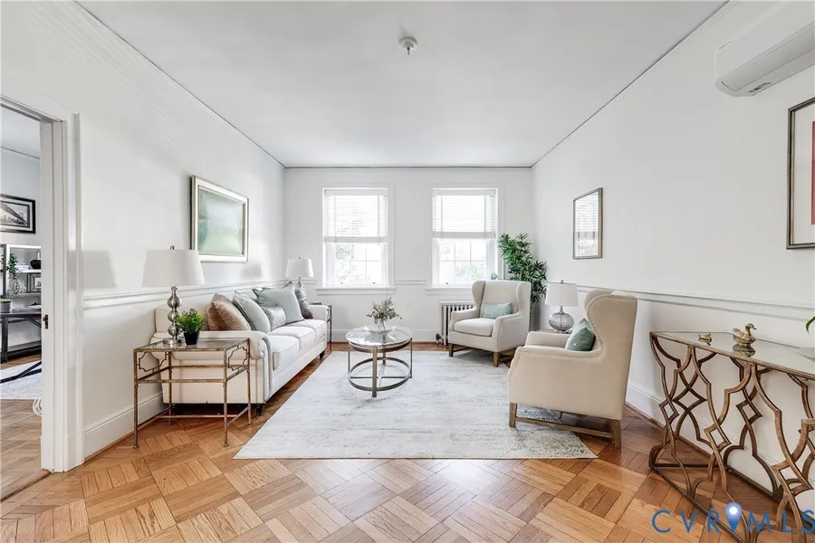 ""This stylish 2 bedroom unit at the Tuckahoe is ready for a new owner! Unit #109 with 871 square feet is filled with bright, beautiful light from sunrise to sunset on three sides. Nestled on the west side of the building on the first level, #109 offers many desirable features: Direct access to the unit from an assigned parking spot is so convenient. A brand new Lennox/Samsung minisplit, installed July 15 keeps all rooms comfortable The Miele dishwasher plus the new GE refrigerator and ample pantry make this galley kitchen a pleasure. The 9'6"""" ceilings throughout make a great canvas for design with tons of wall space for art etc. The large primary bedroom and second bedroom/office both have good light and great windows. The Tuckahoe, built in 1927 and designed by the famed architect, Duncan Lee, is truly Richmond's grande dame of condominiums. Easy access to shopping, restaurants, schools, places of worship as well as to all interstates make this location tops. Lovely roof-top solariums with incredible views, handsome common areas, dramatic marble front hall with 12' ceilings and gorgeous chandeliers make the Tuckahoe a true gem! Come and See!""