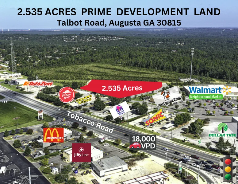 2.535 acre parcel adjoining second row drive into Walmart Neighborhood Market. Growing area with hundreds of new homes under construction next door and nearby. Many other retailers nearby as well. Windsor Springs traffic counts 21,000 VPD and Tobacco Road has 18,000 VPD. According to Placer.ai, the Walmart Neighborhood Market located next door, is currently the 2nd busiest in Georgia, with the majority of customers household annual income being $75,000 - $100,000. And most frequented by their customers daily between 4pm 7pm.