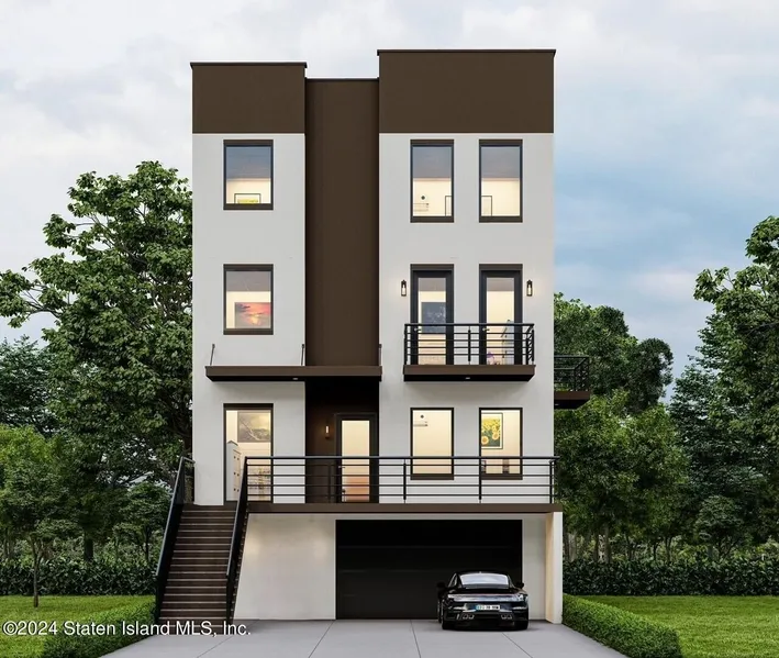 This customizable 2024 new construction single-family home in Staten Island, NYC, offers over 2,800 square feet of modern living space. Spanning four stories, the residence features an attached garage and is designed with comfort and convenience in mind. The master bedroom includes a 3/4 bath with a standing shower, providing a private and luxurious retreat. A large balcony overlooks a serene park just across the street, offering a perfect spot to relax and enjoy the view. The home is ideally situated close to Manhattan, with supermarkets and a variety of restaurants nearby, ensuring you have everything you need within easy reach.
