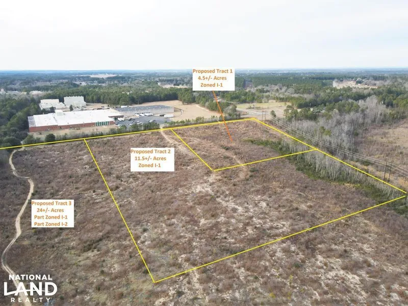 This is an 11.5+/-acre "proposed light industrial tract" the seller will subdivide out of a 40 acre tract zoned light industrial. We are also offering a 4.5+/- acre tract and a 24+/- acre tract. These lots are only proposed so if you need more acreage or less acreage, let us know. This lot as shown will have approximately 345' of road frontage on Hwy 177. Very accessible to Hwy 74 (1 mile). This land makes an ideal central location between Charlotte, NC, and Wilmington, NC. Per Hamlet zoning, this 40 acre tract can only be divided into a maximum of 3 tracts to keep it as a "minor subdivision". None of the proposed 3 tracts will be eligible for further subdivision for 5 years. This proposed tract or any proposed subdivision of the 40 acres will be contingent upon approval by Hamlet/ Richmond Co Planning and Zoning. For more information or if you would like to inquire about a different lay...