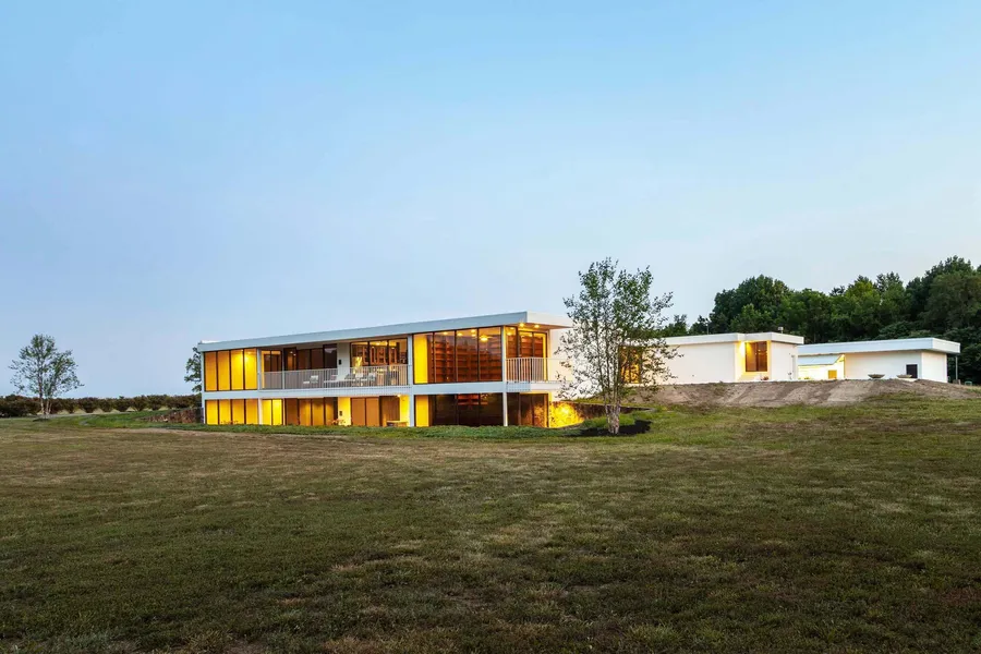AUCTION OPEN. Bid Now through Thursday, July 22, 2021. Previously Listed $2,800,000. Current High Bid $750,000. Showings Daily 1-4pm by AppointmentThe rarest of finds in Virginias prestigious Northern Neck beckons, inviting you to enjoy it by land or by air. This spectacular work of contemporary architecture, constructed primarily of glass supported by concrete and steel, sits on nearly 140 rolling acres with its very own 3,000-foot private airstrip. A private airplane hangar completes any pilots dream home, granting the ability to fly into your own property and taxi right to your front door. Enjoy the wide-open spaces with immense game, fowl, and wildlife. Gather at the fully fitted kitchens modern breakfast bar for cappuccinos and croissants at daybreak. Ascend into the air above for a front-row view of the rising sun from your private planes cockpit. Land again after lunch beside your...