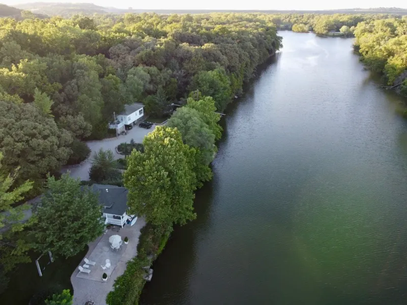 Just outside Manhattan, Kansas, this charming property combines serene countryside living with easy access to vibrant city life. The retreat features a delightful 1920s cabin, a cozy Carriage Cottage, and a picturesque Stone House Studio, additionally a boathouse awaiting your creative touch, this property offers endless perched above the scenic Big Blue River. Start your mornings with the magic of river-bottom sunrises, where the soft hues of dawn blend with the misty river fog, creating a breathtaking view right from your doorstep. As the fog lifts, explore the winding trails that meander through private woodlands, offering excellent fishing spots and endless opportunities for water fun. Despite its secluded feel, this hidden gem is just a short drive from the lively heart of Manhattan. Enjoy the diverse dining, exciting nightlife, and unique shopping experiences of Aggieville, Kansas. Plus, the proximity to Kansas State University means you’re minutes away from Wildcat Football and a thriving college town atmosphere. Whether you’re looking for a VRBO, Airbnb opportunity, or a forever home, this hidden retreat on the Big Blue River is your perfect escape. Embrace the serenity, the adventure, and the stunning natural beauty that make this property truly one-of-a-kind.