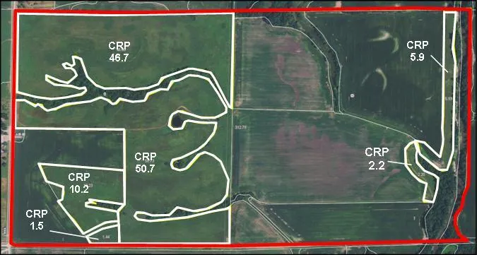 320 acres, m/l, with 276.1 crop acres (including CRP land) and CSR of 56.1 on the crop + CRP acres.