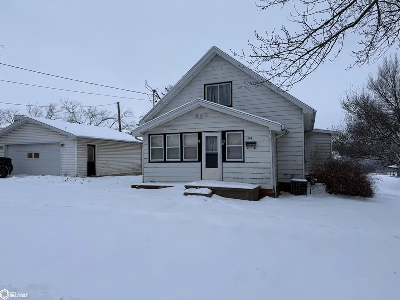 Welcome Home to 507 N Hayes Street, Mount Ayr, Iowa Step inside this timeless 3-bedroom, 1-bath home and you'll immediately feel the warmth of its history paired with modern comfort. Built in 1917, the house carries the charm of a bygone era-an inviting staircase, and an enclosed front porch that begs for morning coffee or evening conversations. The main-level master bedroom (added on in 1965) offers convenience and privacy, while two spacious upstairs bedrooms provide room for family, guests, or even a home office. Sunlight streams through the south-facing windows, filling the living and dining rooms with a cheerful glow. Imagine hosting friends in the backyard, where there's space for a garden, fire pit, or summer barbecues. The oversized two-car garage doubles as a workshop, perfect for hobbies or extra storage.