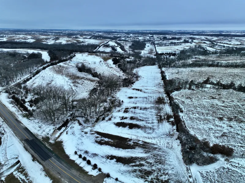 This farm sports all of the key ingredients needed to hold deer and also sets up to effectively hunt it. The creek bottom runs the entire length of the farm from East to West. This allows a hunter to play the wind more effectively, considering we get more North and South winds than we do East and West. Access to the farm couldn't be better with low maintenance dirt road frontage on the south boundary and paved hwy access on the East. The farm offers some incredible views looking North from the high ridges on the south end of the farm. There's very little visibility into the farm from the south dirt road because of the natural screen of cedars and vegetation shielding the farm. The habitat here is very diverse, from the approximately 29 acres of crop ground and brushy cover to the big timber and creek bottom, all the boxes are checked. The wildlife will always have water provided by the three ponds on the property, all of which survived recent droughts and never went dry.