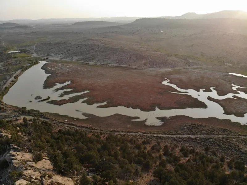 Property has 2 water wells and numerous dirt surface tanks. One tank is very large at approximately 3.5 acres.
