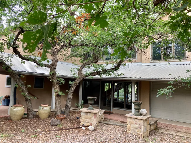 In the northcentral region of New Mexico is a land of many colors affectionately known as OKeeffe Country. Here you will find the Ranch of the West nestled against a magnificent yellow bluff and the Canjilon Creek along US Hwy 84 just 5 miles north of the Ghost Ranch. The landscape of this charming 50-acre parcel ranges from the canyon floor almost to the rim rock with access to thousands of acres of the Carson National Forest. The beautifully constructed two story, three-bedroom, three-bath home was designed to allow its inhabitants to bask in the surrounding beauty with views in all directions. Nestled in a large mott of oaks, with one of the enormous yellow bluffs and the creek as its backdrop. Watch the sun rise in the east or enjoy the outdoor fireplace with large rock patio in the evening.