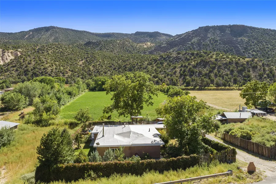 This adorable home is situated on 4.7 acres with water rights of which 4.2 acres are irrigated with a diversion of 12.6 acre feet per annum according to the Office of the State Engineer. There is also a private well and a new permitted septic system. The home has two bedrooms and two baths and is located just a short walk to the Embudo river. The construction is adobe, frame and concrete block with insulated windows, a large, very bright sunroom with brick floors & a detached garage/workshop which could also be converted & used as studio space. The home has an open floor plan and is heated with a woodstove in the living area, has hardwood floors in the kitchen and dining room, a gas stove in the kitchen area and Mitsubishi mini-splits for heating & air conditioning in the living area & bedrooms. Beautiful artistic Mexican tile is located in the kitchen and baths. The windows & brick floor in the sunroom help to keep the home warm in the winter. The field is currently planted in a grass/alfalfa mix & provides three cuttings per year. There are also many fruit trees and other shade trees. Raised bed gardens have provided many vegetables for several seasons. This property has so much opportunity for different options. Use your imagination and create your own sustainable lifestyle. Dixon is a highly sought-after village in Northern New Mexico, located between Taos and Santa Fe, home to painters, vegetable farmers, wine makers, stone sculptors, the Embudo Valley Community Library, the wonderful Dixon Cooperative Market and Deli, Vivac and LaChiripada Wineries, Zuly’s Café and numerous art studios and galleries.