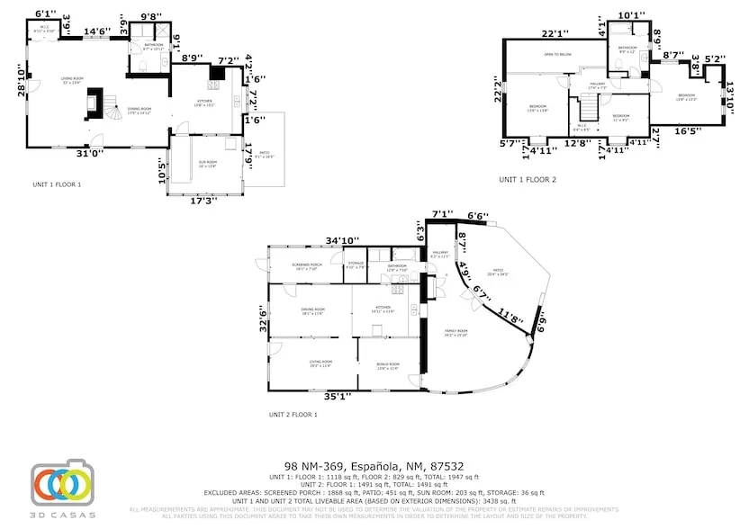 Located midway, down a private drive, in Upper San Pedro, sets a two home compound. Although each house is completely different from the other, they both can be lived in as they are remodeled. Both homes have their own individual electric meters and natural gas meters. The small guest house is mostly adobe. It has one bedroom, with a kiva fireplace, exposed adobe, and an incredible door that separates the bedroom from the bonus room and the living room. There is a small kitchen, dining room, and full bathroom. There are some stained glass windows. The main house has three bedrooms and two baths, one 3/4 bath and one full bath. It is a very spacious home, with unique wood flooring, in the living room/ dining room area, of the main floor. The fireplace that is in the center of the dining room and living room, had a wood stove hook up that piped up through the fireplace chimney. At this level there is also a bathroom and kitchen. The winding staircase is very nice leading up to the upper level, with the three bedrooms and one full bath. Outside this house is a root cellar. Both homes need work, most of which can be done as one lives in them. The two dwellings are set on 1.38 Acres of land. There is a private well shared by the two homes that could also be used for a new landscaping venture or domestic gardening, it does have irrigation water rights. There is a barn that also sets on the property, it is large and could be used to store vehicles or feed, for the chickens, that can live in the old adobe structure that may be renovated, into a chicken coop. This is a unique opportunity, with endless possibilities. Minutes away from Santa Fe, Los Alamos, Taos, and Abiquiu. SELLER WILL NOT CONDUCT ANY REPAIRS ON THE PROPERTY.