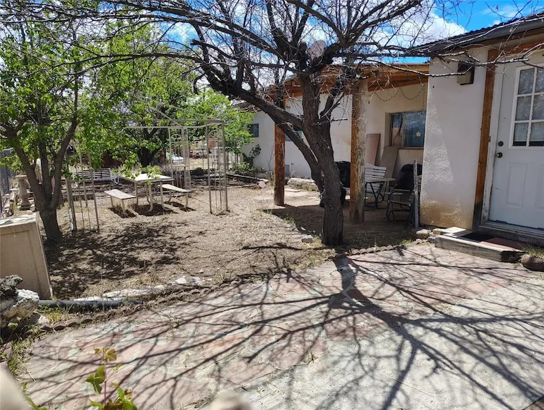 INVESTOR SPECIAL with income generating opportunity!! This 3 bed 2 bath home with an optional living space or flex room has approximately 1800 square feet (+/-), a versatile kitchen that not only offers a modern electric stove, it also has a vintage wood burning/electric dual option stove for warmth or cooking. One of the two bathrooms has a walk-in shower with disability grab bars and there is also a side entrance with a disability ramp. The seller believes the drop ceiling could possibly be removed to expose the charming and desired southwestern style vigas. Outside in the 1.5 (+/-) acres with views of the valley tree tops lining the river there is a single wide trailer that is currently being used as storage with electrical hookups that could possibly be moved out and replaced as an income generating property. Natural gas runs up to the property. Behind the house there is an added garage and also a detached shop with electric hookups, great for a craftsman. The oversized, tall carport can house vehicles, toys or tractors. Bring them all! If you have been waiting for something affordable to fix up with an opportunity to generate income, this is the property for you! Property being sold as-is and ready to be refreshed!