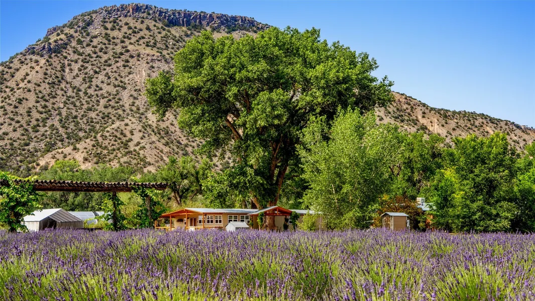 Rare opportunity to own the Purple Adobe Lavender Farm in Abiquiu! This solar-powered, income-producing retreat sits on 11.31 irrigated acres with lavender fields, roses, fruit trees, and water rights. The property includes A delightful Casita, Retail shop with Commercial Kitchen, Greenhouse and out buildings. Business is included, offering on-site/online sales, agritourism, and events. A turn-key blend of sustainability, beauty, and growth potential in the vibrant Chama River Valley.