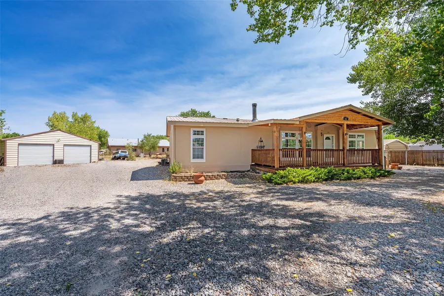 This manufactured home on 1.35 acres is now for sale! It sits in the Monte De Luz subdivision. Has a nice layout inside with a good sized master bedroom and a large master bathroom on one side of the house. The other two bedrooms and bathroom sit on the other side of the home with an office cubby in the hall. Decks extend off both the front and back doors of the home. There is a large metal four car garage on the property as well as a 400 sq ft car port. Beautiful views and a short drive to Espanola, Santa Fe, or Los Alamos.