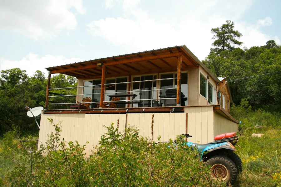 Sitting at the end of a cul-de-sac, in and amongst tall Oak trees is this 2 bedroom, 1 bath cabin with all the privacy and seclusion you want. Bunch of Oak trees on the North side, (cannot see the other lot, other lot cannot see the cabin), a large tract of private land to the West, views and all kinds of southern exposure to the South and woods and another Deer Lake tract that is hidden by the Oak trees. Living room has Ponderosa Pine ceiling, tile floors with large glass doors leading to the large porch facing South with forever decking. Underneath the porch you have room to park you ATV, Snowmobiles, or whatever you want to store. You have your own private well which is big, big plus. The exterior need a lot of work, there is some work that needs to be done on the interior. In other words, this cabin need some tender loving care but after the care you can have a unique little cabin in the woods.