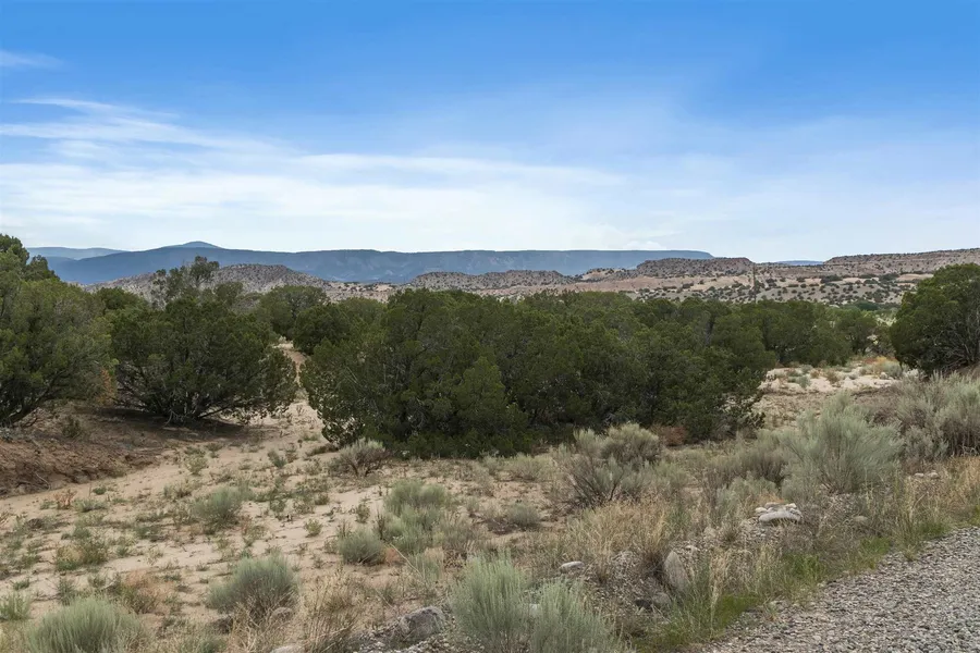 Majestic Land with Expansive Views! Come north to the gated oasis of Rio Ojo Caliente, centrally located to Northern New Mexico, Los Alamos, and Santa Fe. This spacious 5.25-acre lot is privately located in the gated subdivision with several nice building sites. There is electric to the lot, views, privacy, and a maintained road. Well and septic required. Located between Rio Chama and the Ojo Caliente River, the property enjoys majestic views of white rock outcroppings. This community has all custom homes and is located near the Hot Springs, Abiquiu Lake and Ghost Ranch. Easy to show. Covenants are available for review.