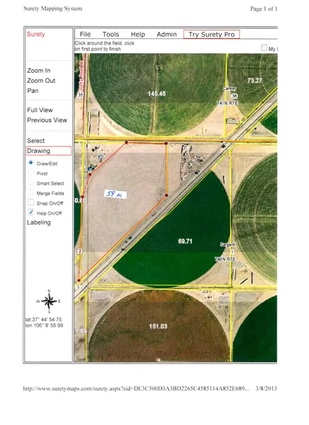 Great buy on this 58.32 acre property with approx 42 acres of irrigated land (according to FSA). Very near Center, CO with access off Hwy 112. Included with the land is 2.5 shares of