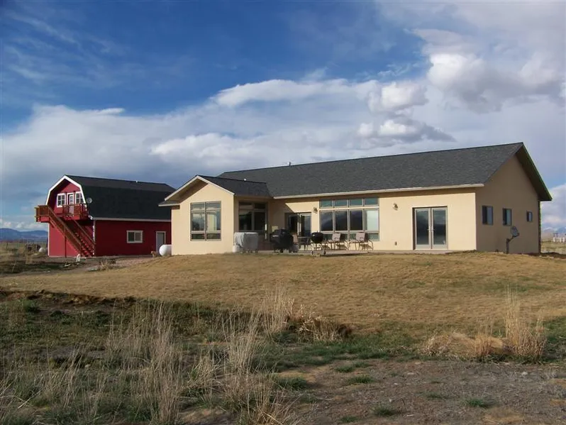 Quality built and tasteful craftsmanship, ranch style home with attached two car garage is located in the Sargent School District between the communities of Del Norte and Monte Vista. Constructed with a eye towards quality and low maintenance, exterior of home is stuccoed and stone, and has lovely landscaping and walkways around home and to the barn. Entrance to home welcomes you into an open living room, powder room, and lovely kitchen with many windows to enjoy spectacular views to the west. Spacious master bedroom is 14x20; master bathroom is 14x10, has separate 4x4 tiled shower, jetted tiled tub, and toilet room, his and her sinks/cabinets with granite counter tops, two walk-in closets, and walk-out patio area. Other two bedrooms are 14x16 and are tastefully painted and offer nice closet space; additional bonus room/office has inviting French doors. Barn is 24x34 has electric, concr...