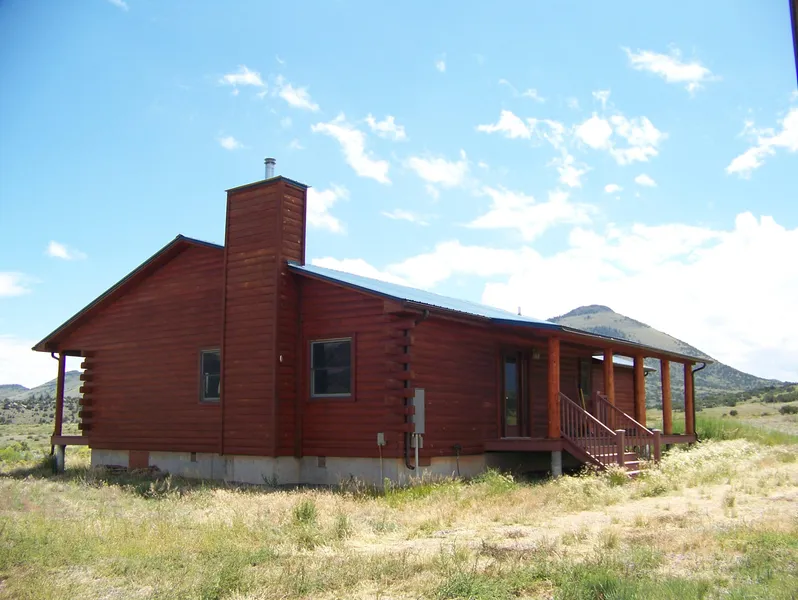 This log constructed home built in 1999 is in a lovely setting with surrounding expansive mountain views and unique cliff and rock formations. Covered porches on front and back sides. Home is ranch style with hardwood flooring throughout kitchen and living areas. Kitchen has lovely granite counter tops and stainless steel Whirlpool refrigerator/freezer and dishwasher. Cozy stone propane fueled fireplace in living room. Separate laundry area and attic storage space. Large workshop is workman's dream. Property also offers a detached two car garage and shed. Home awaits your special touches. And, especially for outdoor enthusiasts an abundance of nearby public lands.